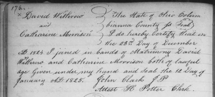 I haven’t been able to find a will for David Withrow, but I did find this will of his son, Hugh. It’s a great will because he gives up so much genealogical information.