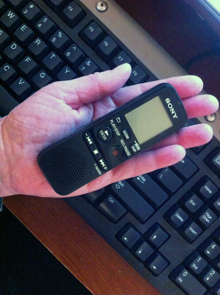 It might just be me, but when I’m trying to transcribe anything with old handwriting, I have a hard time with going back and forth from the original document to the Word document. I know that at least part of it is that I’m dealing with trifocals (not much to be done about that!), and part of it is my impatience with not being able to immediately find the spot where I left off when I look back to the original document on the screen. So one day, I grabbed this tiny little digital recorder that I have…